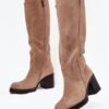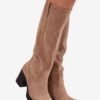 Women’s boots made of eco-suede are a perfect proposal for the autumn-winter season. The model set on a massive column heel provides stability and comfort when worn. Rounded toes give the whole a classic look, and a practical zipper closure makes it easy to put on and take off. The interior lined with soft shoe lining guarantees thermal comfort on colder days. These universal boots will work great in both daily and more elegant stylings.