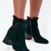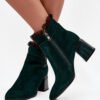 Elegant women’s ankle boots made of natural suede are the perfect combination of style and comfort. The model is insulated, making it perfect for cooler days. The shoes are fastened with a zipper, which makes them easy to put on and take off. The stable column type heel ensures wearing comfort, while also beautifully slimming the silhouette. There is an ornament on the side that adds elegance, and the top of the shaft is adorned with subtly pleated mesh, giving the whole a unique, feminine character. This is a perfect choice for autumn and winter stylings.