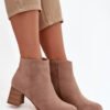 Women’s ankle boots made of eco-suede are an elegant and versatile proposition for colder days. The model with a classic cut is set on a stable pillar-type heel, which ensures comfort and confidence in every step. The shoes are fastened with a zipper, which makes it easier to put on and take off. These timeless ankle boots will perfectly complement both everyday and more elegant stylizations.