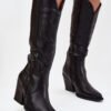 Women’s cowboy-style boots made of eco-leather are a stylish proposal for women who appreciate a fashionable, western character. The model is set on a stable, cut-out column heel that emphasizes their original style and provides comfort while walking. The characteristic stitching on the shaft adds a unique style to the whole, and the pointed toes visually slim the legs. The boots are slip-on, with an additional zipper for easy on and off. The interior is lined with foam covered with fabric, guaranteeing comfort and warmth on cooler days. This is the perfect choice for women who like to combine comfort with a fashionable, slightly rock accent, perfect for jeans, dresses, or boho-style skirts.