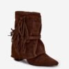 Women’s ankle boots made of eco-suede are the perfect combination of style and original details that catch the eye. The overlapping upper subtly slims the silhouette, while the pointed toes add elegance and a feminine character. The model decorated with fringes and thin straps with gold buckles introduces a fashionable accent, giving a unique, modern look. The ankle boots will work perfectly in casual outfits as well as in more formal stylizations, adding a touch of originality and chic. Comfortable and eye-catching, they are a great choice for everyday wear and special occasions.