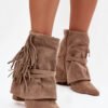 Women’s ankle boots made of eco-suede are the perfect combination of style and original details that attract attention. The overlapping upper subtly slims the silhouette, while the pointed toes add elegance and a feminine character. The model decorated with fringes and thin straps with golden buckles introduces a fashionable accent, giving a unique, modern look. The ankle boots will work perfectly in casual outfits as well as in more formal stylizations, adding a touch of originality and elegance. Comfortable and eye-catching, they are a great choice for everyday wear and special occasions.