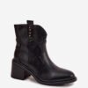 Women’s cowboy-style ankle boots, made of eco leather, are a proposal for women who appreciate the combination of comfort and fashionable look. The model is set on a massive, stable heel, which adds height to the silhouette, while providing comfort while walking. Rounded toes. Fastened with a zipper, they are easy to put on and take off, and the interior lined with soft shoe lining guarantees warmth on colder days. These stylish ankle boots fit perfectly into current trends, ideal for both jeans and dresses or skirts, creating a fashionable, feminine look.