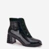 Women’s ankle boots made of natural, patent leather are a proposal for women who appreciate elegance in a modern edition. The glossy surface of the leather gives them a unique character and makes them look great in both everyday and more formal stylizations. Decorative details are placed at the front, which highlight the unique appearance. Rounded toes. The zipper closure makes it easy to put on and take off. The interior is finished with a soft-touch shoe lining, which gently warms and guarantees comfort on cooler days. These ankle boots will be perfect for the autumn-winter season, serving as an elegant and versatile element of a woman’s wardrobe.