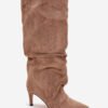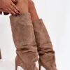 Women’s boots made of soft eco suede are an elegant and feminine proposition for colder days. The model on a slim stiletto beautifully emphasizes the legs, and the pointed toe adds elegance and visually slims the silhouette. The gathered, loose shaft gives the whole a fashionable character. The shoes are slip-on and lined with a fleece lining, providing comfort and thermal comfort. This is a very stylish cut that will perfectly complement both elegant dresses and casual sets with jeans, creating a trendy and feminine look.