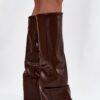 Women’s boots with a rolled-up upper are a real must-have for the upcoming autumn-winter season! Slip-on and set on a stable column-type heel, they guarantee comfort and a confident step. Insulation provides comfort on cooler days, and the rolled-up upper, overlapping the heel, adds original character to them. Pointed toes emphasize a feminine style, making the boots perfect for stylish winter outfits.