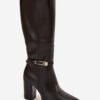 Women’s boots made of eco leather are an elegant proposal for colder days. Set on a stable column heel beautifully slim the silhouette, and pointed toes emphasize the feminine character of the footwear. The interior is lined with foam, which is covered with fabric. Fastened with a zipper. A stylish accent is a thin strap with a gold buckle placed at the bottom of the upper, which adds a subtle finish to the whole. These boots will work great in both casual and elegant stylings.