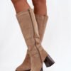 Women’s boots made of eco suede. Set on a column heel. Fastened with a zipper, ensuring easy putting on, and insulation with a shoe lining guarantees warmth on cooler days. The shaft reaching to the knee is decorated with a subtle element of straps and stitching, which add character to the boots. These boots will be a perfect choice for elegant and casual stylizations, providing comfort and a fashionable look.