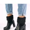 Slip-on ankle boots with a decorative upper part of the shaft in the form of elastic “sock” are a combination of modern design and exceptional comfort. Made of high-quality ecological leather, they look elegant and are easy to care for. The 22 cm high shaft perfectly fits the leg, emphasizing its slender shape and giving the footwear a fashionable, slightly sporty character. The round toe provides comfort even during intensive use, and the soft inner lining makes the boots perfect for colder days. The stable 9 cm heel adds elegance to the silhouette, while remaining comfortable and comfortable for everyday wear. The fabric insole guarantees additional softness, and the classic cut makes the boots easy to match with many styles, from casual to more formal. It is the perfect choice for women who like to combine style, comfort, and bold details.