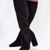 Women’s boots with a shaft made of flexible, material finish in the form of a sock are a fashionable and feminine proposal for many occasions. Thanks to the slip-on style, they fit the leg perfectly, emphasizing its shape. Pointed toes add elegance and slim down the silhouette. This is the perfect model for styling with skirts and dresses, giving the whole outfit a modern character.