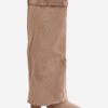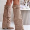 Elegant women’s boots made of synthetic suede. Set on a column-shaped heel. Pointed toes. The interior is lined with a shoe blanket. A unique feature of this model is the folded shaft with a detachable strap at the top of the shaft, which wraps around the heel. Zipper closure. Perfect for wearing with dresses or skirts!