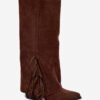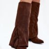 Slip-on cowboy boots made of eco suede, set on a block heel, are a combination of comfort and style. Pointed toes add elegance, while the shaft decorated with fringes adds a light, boho accent. Perfect for casual stylizations, they go well with dresses, skirts, and pants, adding a touch of cowboy charm to any outfit.