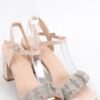 Women’s suede sandals with an 8.5 cm heel. Strap embellished with glittering stones makes them irresistible. Buckle at ankle emphasizes it beautifully and square sole is the trend of the season… You will feel like a real star in them! Outer material ? ecological suede.
