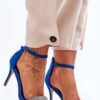 The classic sandals were made of eco-suede. They were set on a stiletto heel. The sandals have a stiffened heel counter. In addition, the strap in front was decorated with rhinestones imitating zircons. The model with an open, rounded nose. The sandals are fastened around the ankle with an adjustable strap with a buckle.