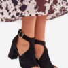 Women’s sandals made of eco-suede, adorned with a subtle lacy pattern. Set on a stable column-shaped heel, they provide comfort and an elegant look. The model fastens with a buckle and will be perfect for various occasions.