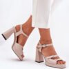 Elegant women’s sandals made of natural leather are a perfect choice for special occasions. Set on a column heel, they provide stability and comfort throughout the day. In the front, there is a subtle strap with a buckle. Fastened around the ankle, they allow for a perfect fit to the foot. The leather insole ensures comfort and proper cushioning. These sandals will be a perfect complement to evening and festive stylizations, combining style and functionality.