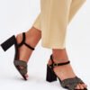 Women’s sandals made of eco suede. Set on a column heel that provides stability and comfort all day long. Fastened with a buckle with an adjustable strap, allowing for a perfect fit to the foot. Two intertwining straps at the front attract attention. Perfect for summer dresses, skirts or elegant trousers, they are an ideal complement to feminine stylizations for any occasion.