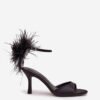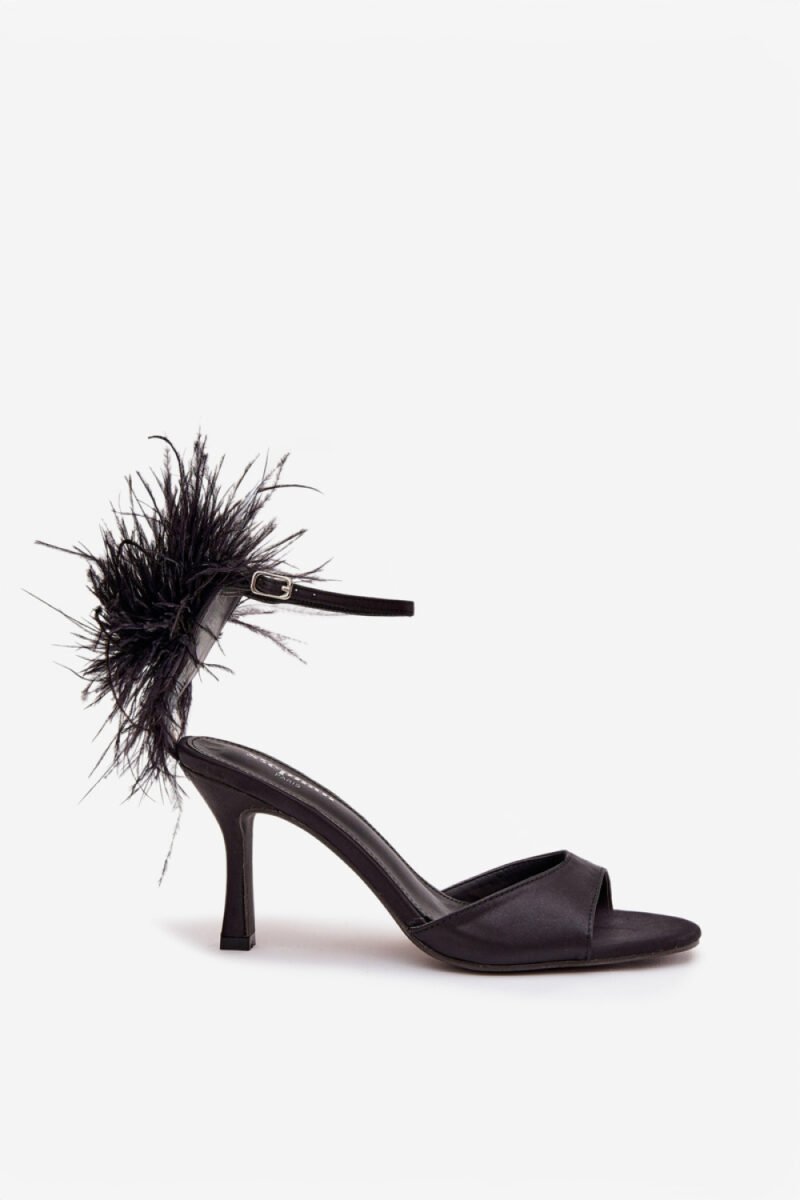 Women’s sandals made of delicate textile material are a proposal for women who like to stand out with their style. The model set on a slim heel emphasizes the legs and adds elegance to the silhouette. The ankle strap with a buckle closure ensures stability and a spectacular exposure of the foot. The biggest advantage of this model is the decorative feathers, which give the shoes lightness, originality, and a unique character. These are perfect sandals for special occasions, evening outings, or parties where you want to dazzle with your look.