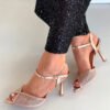 Evening women’s sandals with a stiletto heel are the perfect choice for special occasions, when brightness and elegance matter. The slim heel subtly elongates the legs and adds a lightness to the feminine silhouette. The front made of delicate mesh, adorned with a spectacular, shimmering detail, attracts attention and gives the whole a unique character. The buckle closure with an adjustable strap ensures a good fit and comfortable wear. This is a model that will perfectly complement evening stylizations and make you feel special.