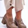 Women’s heeled half shoes with an upper made of natural leather. The interior is also covered with natural leather, thanks to which they are very comfortable to wear. The stylish heel in the form of a wide post will provide stability at every step. In addition, under the tongue there is a tightening elastic band, which will make the shoe perfectly fitted to the foot. This model has a padded heel counter and a small decoration on the strap.