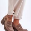 Women’s heeled half shoes with an upper made of natural leather. The interior is also covered with natural leather, thanks to which they are very comfortable to wear. There is a shiny ornament on the front. The stylish heel in the form of a wide post will provide stability on every step. The heel counter is padded. In addition, under the tongue there is a tightening elastic band, which will make the shoe perfectly fitted to the foot.