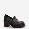 Women’s leather half-shoes. Set on a column-shaped heel with a delicate platform. This model has rounded toes. The stiffened heel additionally stabilizes the foot. At the front, a strap with a small detail. Rounded toes. An elegant style that you can match with many pants and dresses.