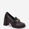 Women’s shoes made of elegant eco leather are a stylish proposal for many occasions. Set on a stable column heel guarantee comfort of wearing and at the same time add lightness to the silhouette. Classic, rounded toes make the shoes look subtly and feminine, and decorative embossing gives them a unique character. The charm of the whole is added by a golden detail, which is an elegant accent and emphasizes the modern style of the footwear. This model will work great both in everyday outfits and in more formal stylizations, combining comfort with timeless elegance.