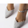 Grey checkered shiny stilettos Gallia are elegant shoes perfect for summer evenings. They have a height of 16 cm and a beautifully shiny checkered pattern. Made of high-quality materials, they have a beige synthetic sole and a practical buckle closure. These stylish stilettos will surely add elegance and class to any outfit. Perfect for evening outings or special occasions. Available in the summer collection.