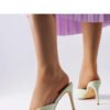 Elegant and stylish green high heel mules Drainer are the perfect addition to your summer wardrobe. Made of high-quality vegan leather, they provide comfort and usability. The heel height is 10 cm, adding elegance and feminine charm to the silhouette. The beige plastic sole ensures stability, and the slip-on closure makes them easy to put on and take off. These mules will definitely be the perfect complement to your summer footwear collection.