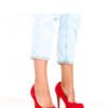 Sensual women’s high heels made of soft ecological suede leather, which captivate with a subtle and feminine accent, decorative flowers adding a unique charm to them. The slim pointed toe emphasizes the elegant character of the shoes, and the decoration makes the model fit perfectly into romantic stylizations. The shoes are set on a 15.5-centimeter heel, complemented by a 4.5-centimeter platform, which guarantees effective slimming of the silhouette while maintaining greater stability. The interior finished with ecological leather ensures comfort during wear. These impressive and elegant high heels will be a perfect choice for special occasions, evening outings, or ceremonies, adding class and a romantic character to the styling.