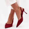 Stylish women’s high heels made of high-quality textile material are the quintessence of female elegance. The model with an open heel subtly exposes the foot, and the pointed toe adds class and lightness. Perfect for special occasions, they go great with cocktail dresses, elegant trousers, or midi skirts.