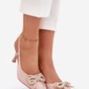 Women’s high heels perfect for elegant parties, evening outings, and special occasions. Slim, pointed toes subtly elongate the silhouette. Attention is drawn to the decorative bow made of small beads and sparkling zircons, which adds a jewelry-like, elegant accent. This is an excellent choice if you want to add a touch of glamour to your outfit and dazzle with your appearance.