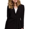 The jacket with pleats and binding on the side emphasizes the waist and slenderizes the silhouette. Combine it with trousers for a perfect set. A proposition full of class and elegance! The jacket is lined.