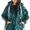 This oversized quilted jacket is a hit of the season. It has a full-length snap fastener, a large hood and practical pockets on the front. A decorative tape with the company logo is placed at the hood and at the bottom of the jacket to adjust its width. Oversized cut makes it fit to many stylizations. Available in 4 colours: beige, black, green and red. Material: lining 100% polyester.