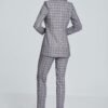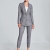Jacket with shawl collar, slightly fitted at the waist, fastened at the front with one button, with a pillowcase, covering the hips. No pockets.