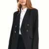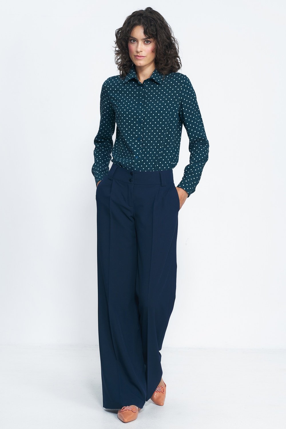 Double-breasted, tight-fitting jacket in autumn colours fits every figure perfectly. This model is slightly longer so it goes well with high-waisted trousers. Looks great even unbuttoned. This jacket definitely draws attention and adds character to styling.