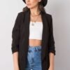 Women’s unbuttoned jacket in black. Cushions sewn on the shoulders.