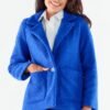 Jacket made of warm, pleasant material fastened with a large elegant button. Its straight cut and square pockets add a chic touch. The jacket is fully lined.