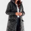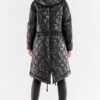 Quilted jacket with knee length, extended back with hood and straight sleeves. Widened towards the bottom, with a drawstring waist, zippered. It will work well as a rain jacket. The jacket is fully lined. The jacket is designed and sewn in Poland.