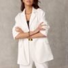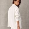 Cut in a voluminous cut with a slightly lowered shoulder line for an impeccable look. The jacket has long sleeves and three buttons located on the side of the cuff. The buttons are in the color of the product. On the sides it has imitation pockets. It will be perfect for all kinds of formal and outgoing creations, as well as everyday being a great break in styling, to a small black dress as an elegant accessory, or sporty to navy blue jeans and sneakers. The product is made and sewn in Poland.