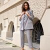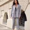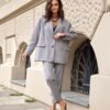 The jacket is made of good quality, pleasant to the touch and comfortable material with viscose. Large neckline, wide shoulders, imitation pockets. One row of buttons, a break at the back. Cut with a voluminous cut with a lowered shoulder line. The whole set on a lining fits beautifully on the body. The women’s jacket has long sleeves and a two-button closure at the front of the model. There are also lapels on the front that transition into a collar that is a decorative element. Allow yourself a bit of freedom, too, and style the jacket with your favorite jeans at will. The product is manufactured and sewn in Poland.