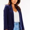 Loose jacket without a clasp. The casual cut goes well with many combinations. The shawl collar perfectly emphasizes the shoulders and neckline. The cut makes it perfectly set the proportions of the figure. It will work perfectly in combination of a total look with pants, made of the same fabric, but you can always match it with a skirt or regular jeans. The jacket has ruffled sleeves, 3/4 length.It is finished with a lining, with decorative pockets.
