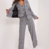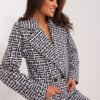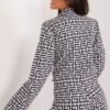 Ideal for women who value elegance and style, the women’s jacket looks exceptional in all situations, whether at work, or during important business or formal meetings. Its versatility makes it perfect for the autumn-winter and spring seasons. This elegant garment has long sleeves, making it a suitable choice for colder days. The dominant pattern is a geometric motif, giving the jacket a modern and dynamic character. Made mainly of cotton, it guarantees comfortable wear and a pleasant feeling on the skin. The button closure makes the jacket easy to put on and take off, while the double-breasted cut makes the whole look elegant and chic. Classic lapels emphasize the formal nature of the jacket, adding to its sophisticated look. The presence of a lining is a practical detail that not only makes the jacket more comfortable to wear, but also enhances its aesthetics. Thanks to these features, this women’s jacket becomes an indispensable closet item for women who want to emphasize their confidence and style in various situations.