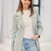 The Freya jacket is a classic standard-length blazer that draws attention with its extremely careful finishing. Note its details, such as the unique herringbone fabric, as well as the classic collar and long sleeves decorated at the end with three buttons. In addition, two flap pockets located on the side of the jacket add functionality and a fashionable look. A convenient button closure through the middle with three single-row buttons makes wearing this jacket extremely comfortable. The thin lining and shoulder pads ensure a perfect fit, adding character to the feminine silhouette. Thanks to its timeless design, our jacket is suitable for many occasions. You can wear it to formal events, family celebrations or business meetings. However, not only for such occasions will this styling work. Paired with jeans and a t-shirt, the blazer is an excellent choice for more casual meetings. For an elegant look, we recommend pairing the blazer with a classic cut white shirt and black pants or smart pants. If you prefer a casual look, you can combine the jacket with well-tailored jeans and a simple white t-shirt.