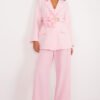 This elegant blazer is the perfect choice for a variety of occasions, from everyday situations to days at work to evening meetings or formal events. Its smooth material and long sleeves make it suitable for both formal and more casual outfits. Made mainly of polyester, the jacket is ideal for the spring/summer season, providing lightweight and comfortable wear even on warmer days. Its standard length and single-breasted button closure give it a classic feel that goes with a wide variety of styles. Equipped with shoulder pads, the blazer provides the perfect accentuation of the silhouette and adds elegance to the entire styling. In addition, a buckle belt with a decorative detachable flower and lined lapels add subtlety and feminine charm, giving it a unique character. Let this lined jacket become an indispensable part of your closet, adding chic and elegance to any everyday or special outfit, regardless of the occasion.