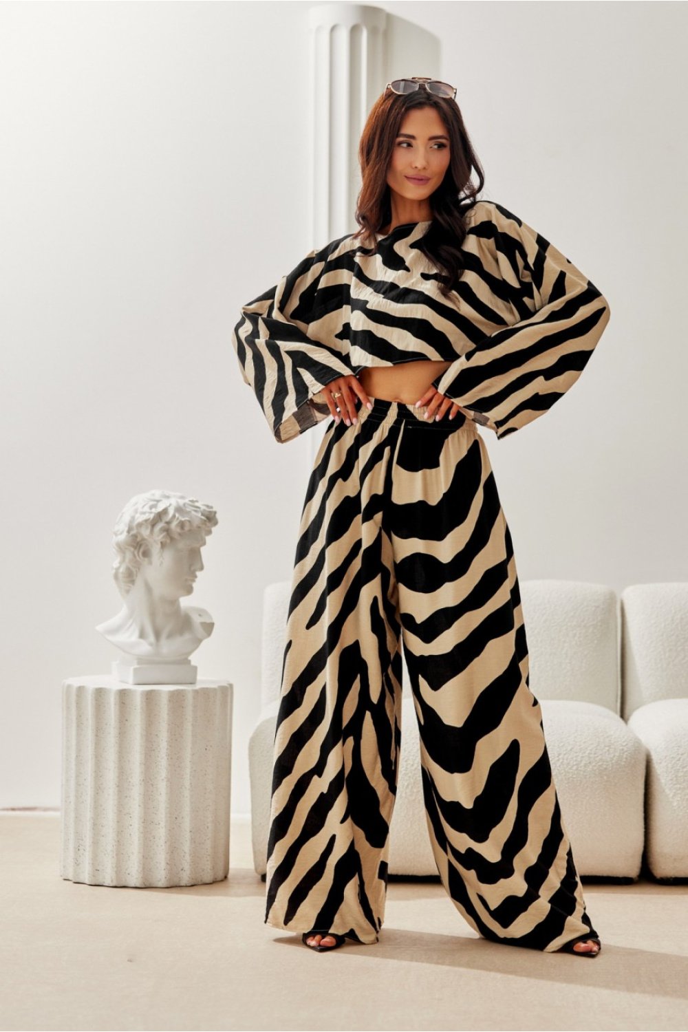 A style with a loose cut and slightly lowered shoulder line that gives an impeccable look. The jacket has long sleeves and three buttons located on the side of the cuff. At the front, there are flaps that transition into a decorative collar. It is buttoned up. It has imitation pockets on the sides. The model has a lining. It will work perfectly in all official and outgoing outfits, as well as in everyday wear, being a great addition to the little black dress as an elegance accessory or sporty with navy jeans and sneakers. The product is made and sewn in Poland.