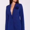 Elegant women’s woven jacket with a slim fit that emphasizes the silhouette. Collarless and fastened with a single button, which gives it a modern and minimalist character. There is a decorative, attached flower on the chest, which adds a unique and feminine touch to the jacket. Pockets with flaps bring practicality and style. The jacket is fully lined for comfortable wear and excellent finish. Designed and sewn in Poland, it is the perfect choice for women who appreciate elegance with a touch of originality.