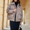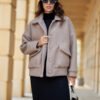 The jacket is made of fashionable lambskin material that guarantees warmth and a stylish look. The quilted lining provides additional comfort and warmth regardless of the weather. On a walk in the park or on your way to work, the Ivon jacket will keep you warm. The classic button closure adds an elegant touch to the jacket, while allowing you to adjust the cut freely. Large flap pockets add functionality and unique style. Store all your small items in the roomy pockets, which are not only practical, but also a fashionable accent. The elegant collar adds a unique chic touch, making the jacket perfect for both casual and more formal combinations. Ivon jacket is a must-have of this season! Create unique styling, combining it with your favorite jeans, fabric pants or airy dresses. The jacket will be suitable for autumn walks to the park and going out with a friend for coffee at a cafe. The product is made and sewn in Poland.