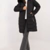 Women’s down jacket with a length before the knee, ideal for the autumn/winter season. The jacket has a casual, urban style, making it perfect for everyday styling. Made of smooth, durable polyester with synthetic filling, it provides thermal comfort and protection from the cold. The quilted texture adds an elegant touch to the jacket, while remaining easy to match with a variety of closet items. The model has a detachable hood with fur, allowing you to quickly adjust the jacket to the weather conditions. The long sleeve and zipper closure provide additional protection from the cold, while the zippered pockets are a convenient solution for storing small items. The jacket is also equipped with an inner lining, which enhances its thermal insulation properties and wearing comfort.