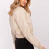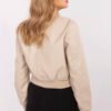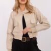 Women’s bomber jacket made of eco-leather is a stylish and functional choice for the transitional season. Made of a combination of polyurethane, polyester, viscose, and cotton, it provides comfort and a fashionable look. Its classic, smooth design and casual style make it perfect for everyday outfits. The short cut emphasizes the silhouette, and the long sleeves provide comfort on cooler days. The jacket is fastened with snaps, giving it a modern character. Additional pockets with flaps on the front highlight the sporty style and increase practicality. The model is equipped with a lining, making it perfect for transitional seasons.